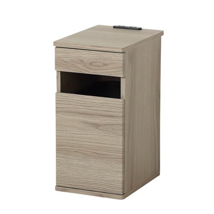 お部屋に馴染むスタイリッシュなデザイン、便利なコンセント付です。