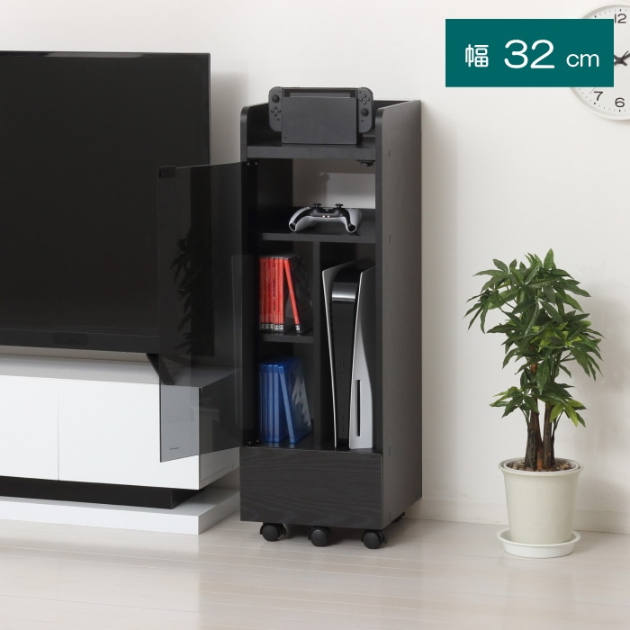 ゲーム機と周辺機器、ゲームソフトをまとめて収納出来る便利なキャスター付きラックです。