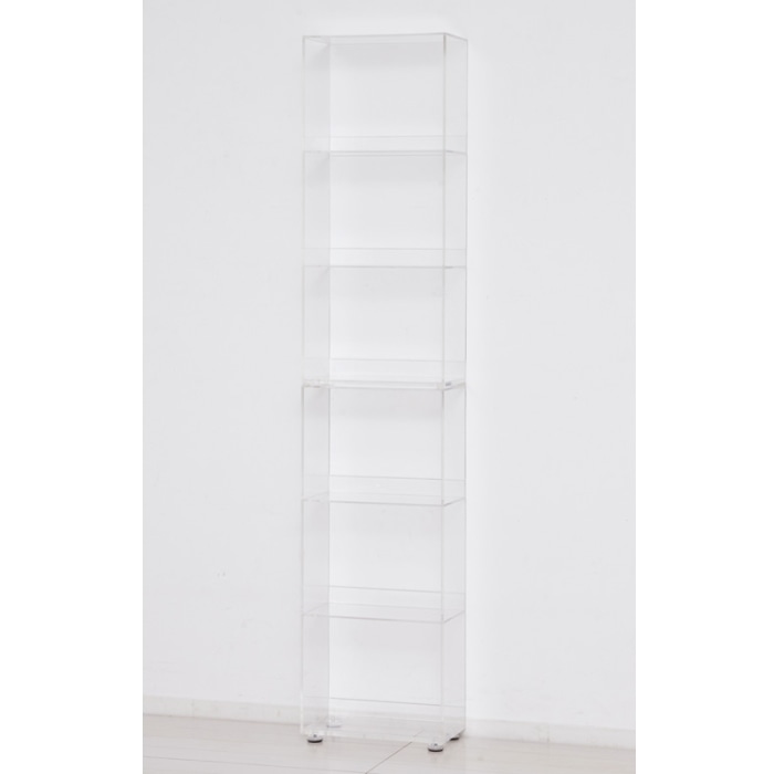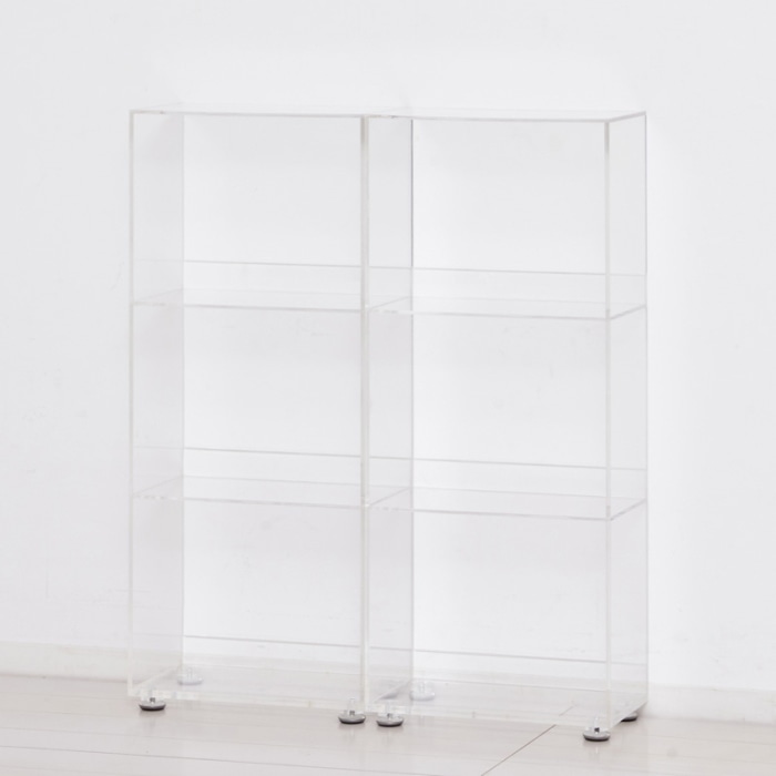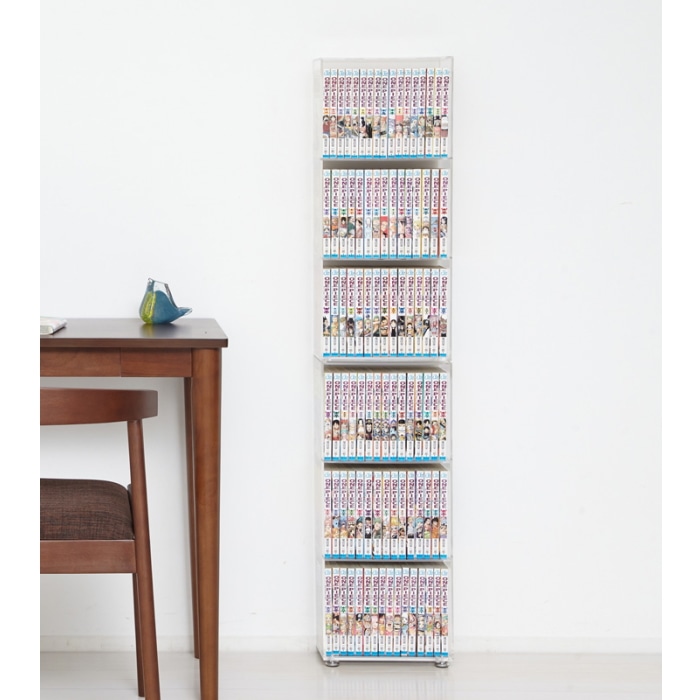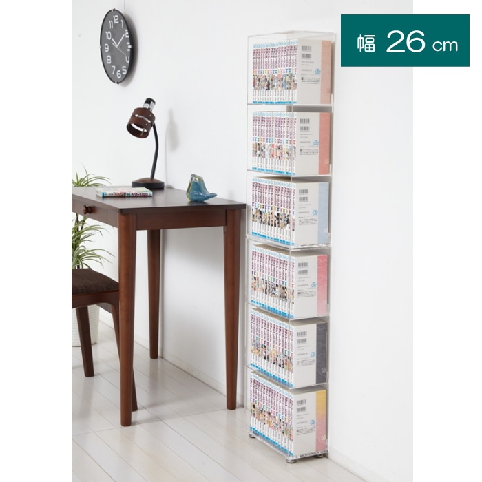 透明のアクリル板ですので、解放感があり圧迫感なく設置できます。 横に並べたり縦に積み重ねたり、設置場所に合わせて置き方を変えられます。 奥行13.4cmの薄型設計、コミック本がピッタリ収まるサイズで場所をとりません。