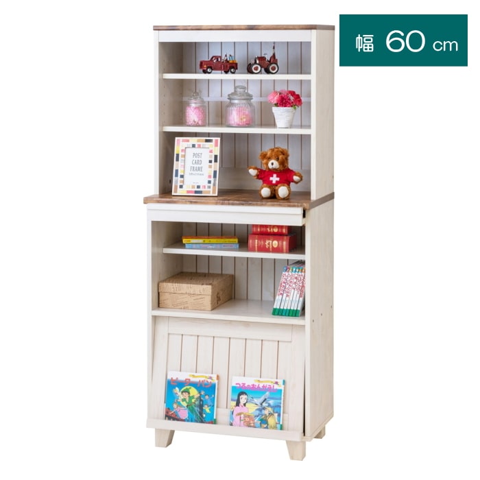 見せる(魅せる)収納&隠す収納ができるフラップタイプ。高さ約151cmと低め設計なので、圧迫感なくお使いいただけます。 リビングでもキッチンでも使え、シリーズで組み合わせれば、温かみのあるカントリー調の空間が広がります。