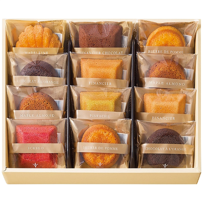 内容:マドレーヌ1個・フィナンシェ2個・フィナンシェ(ショコラ・ピスタチオ各1個)・ケーキ(チョコオレンジ・メープルアーモンド・りんごバター各2個・いちごバター1個)