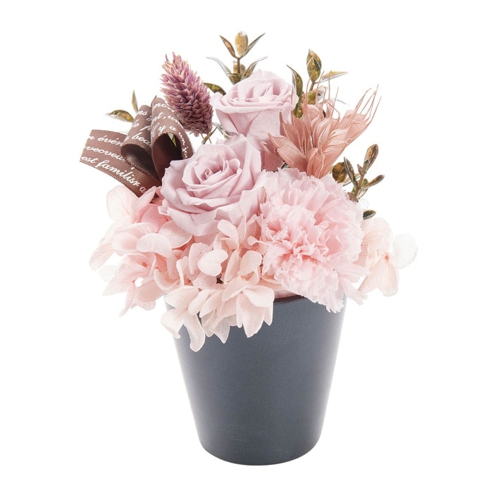 プリザーブドフラワーは生花特有の美しさをそのままに保存加工した長く楽しめるお花。ローズとアジサイ、カーネーションの美しいグラデーションのデザイナーズアレンジで、お母様に笑顔を一緒にプレゼント!※入荷状況により花材が若干変更となる場合がございます。ひとつづつ丁寧に手作りさせていただきますので、若干の個体差が生じる場合がございます。