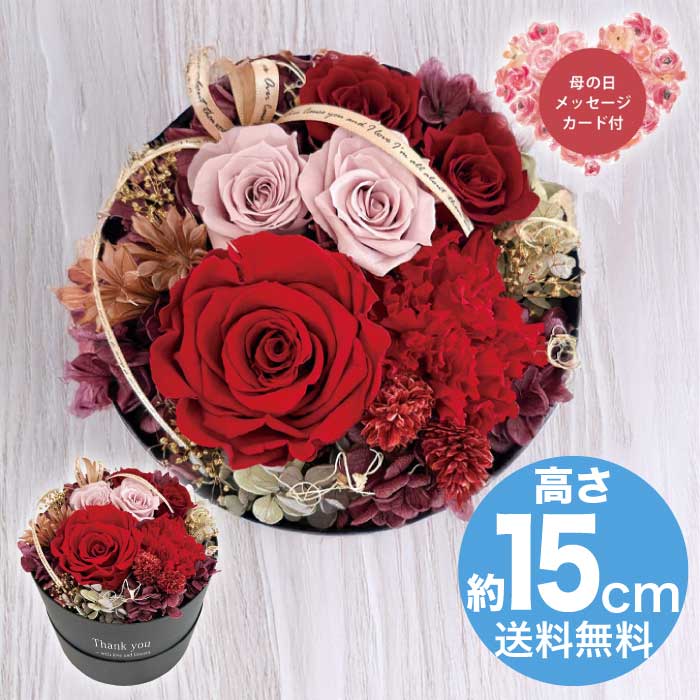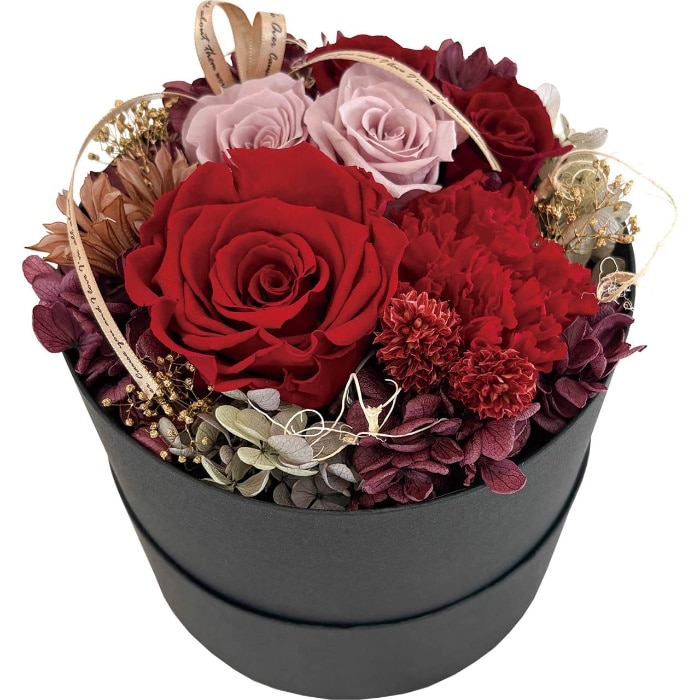 プリザーブドフラワーは生花特有の美しさをそのままに保存加工した長く楽しめるお花。ローズとアジサイ、カーネーションの美しいグラデーションのデザイナーズアレンジで、お母様に笑顔を一緒にプレゼント!※入荷状況により花材が若干変更となる場合がございます。ひとつづつ丁寧に手作りさせていただきますので、若干の個体差が生じる場合がございます。