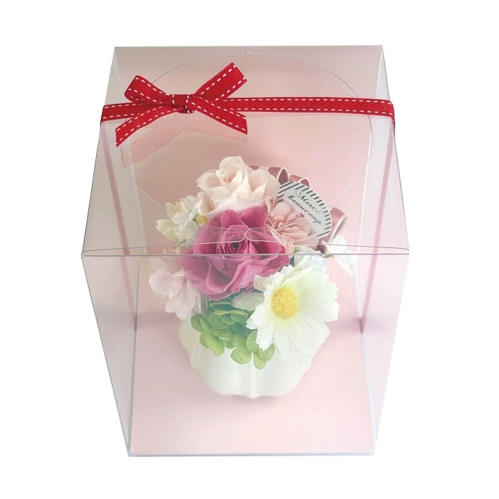 内容:プリザーブドフラワー、ドライフラワー、アーティフィシャルフラワー、リボン、紙ピック、フローラルフォーム、陶器