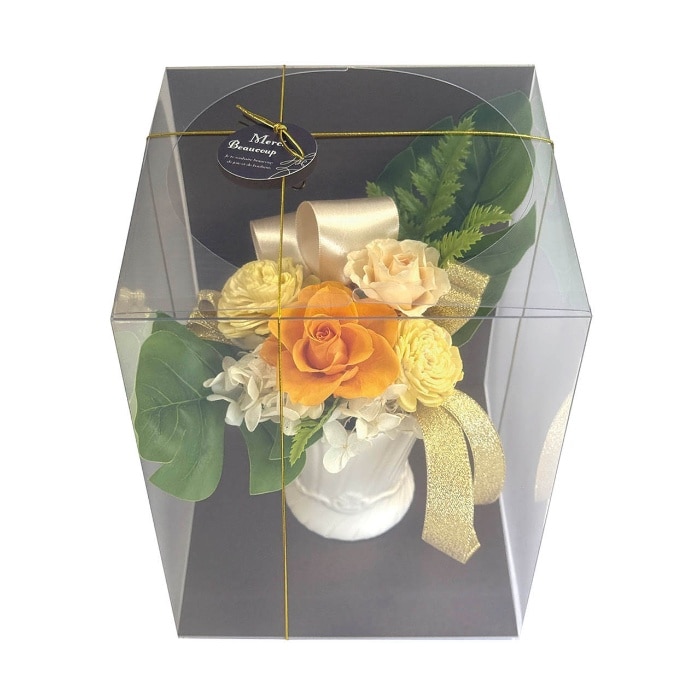 内容:プリザーブドフラワー、ドライフラワー、アーティフィシャルフラワー、リボン、ピック、フローラルフォーム、陶器